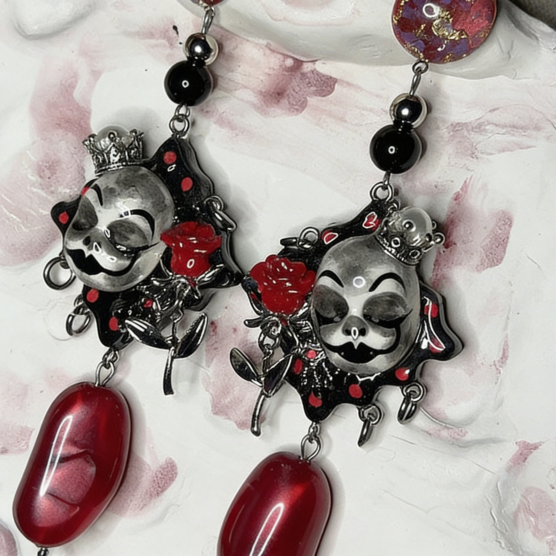 Red Rose Crown Clown Earrings